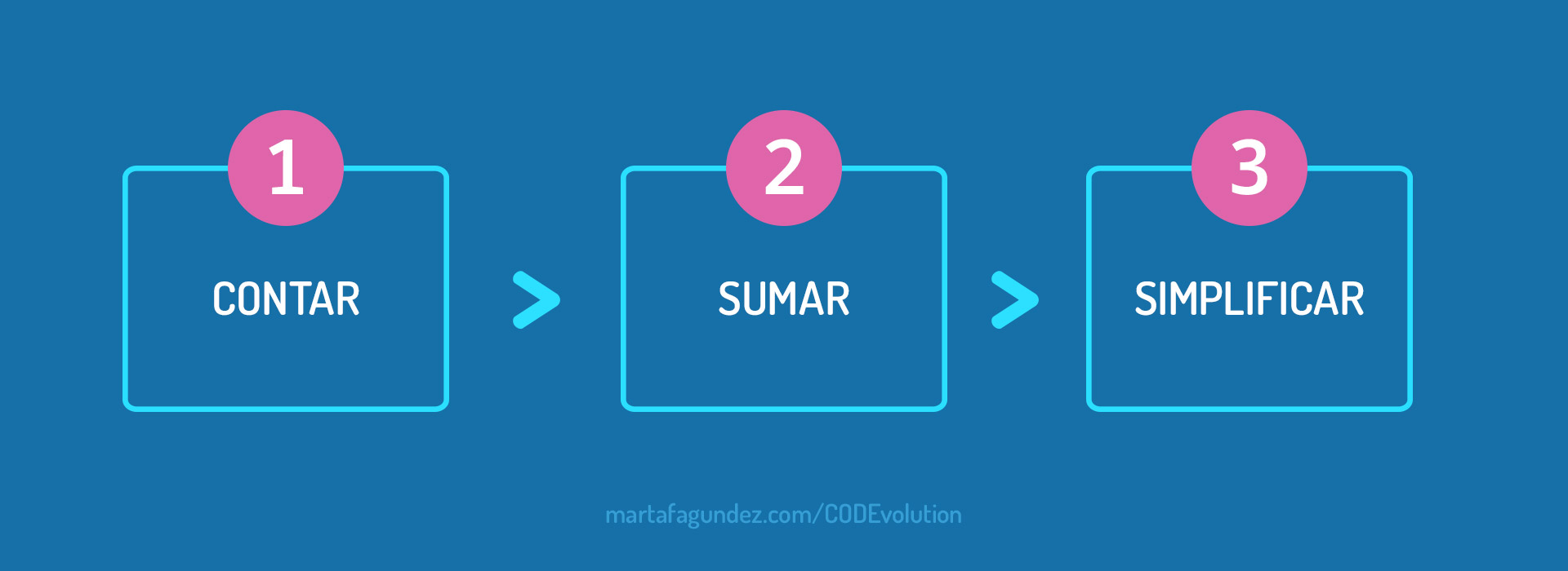 Ahora que estamos más familiarizados con los pasos básicos, para hacer el proceso más cómodo vamos a aplicar la suma (del paso 2) y la simplificación (del paso 3), durante el conteo del paso 1.